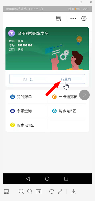 4. 点击行业码,出示虚拟卡二维码在图书馆扫码墩上进行扫码借书